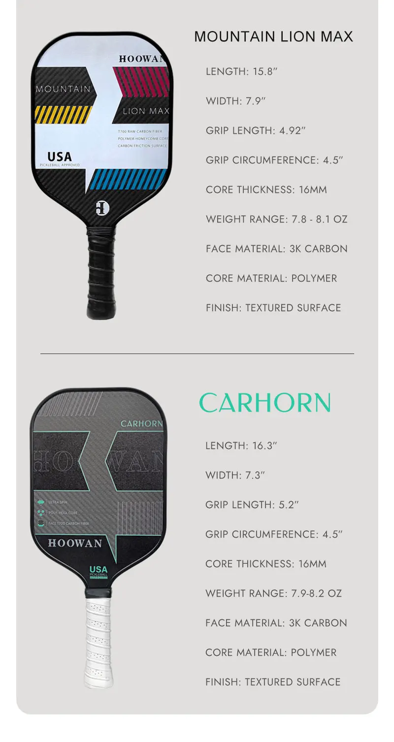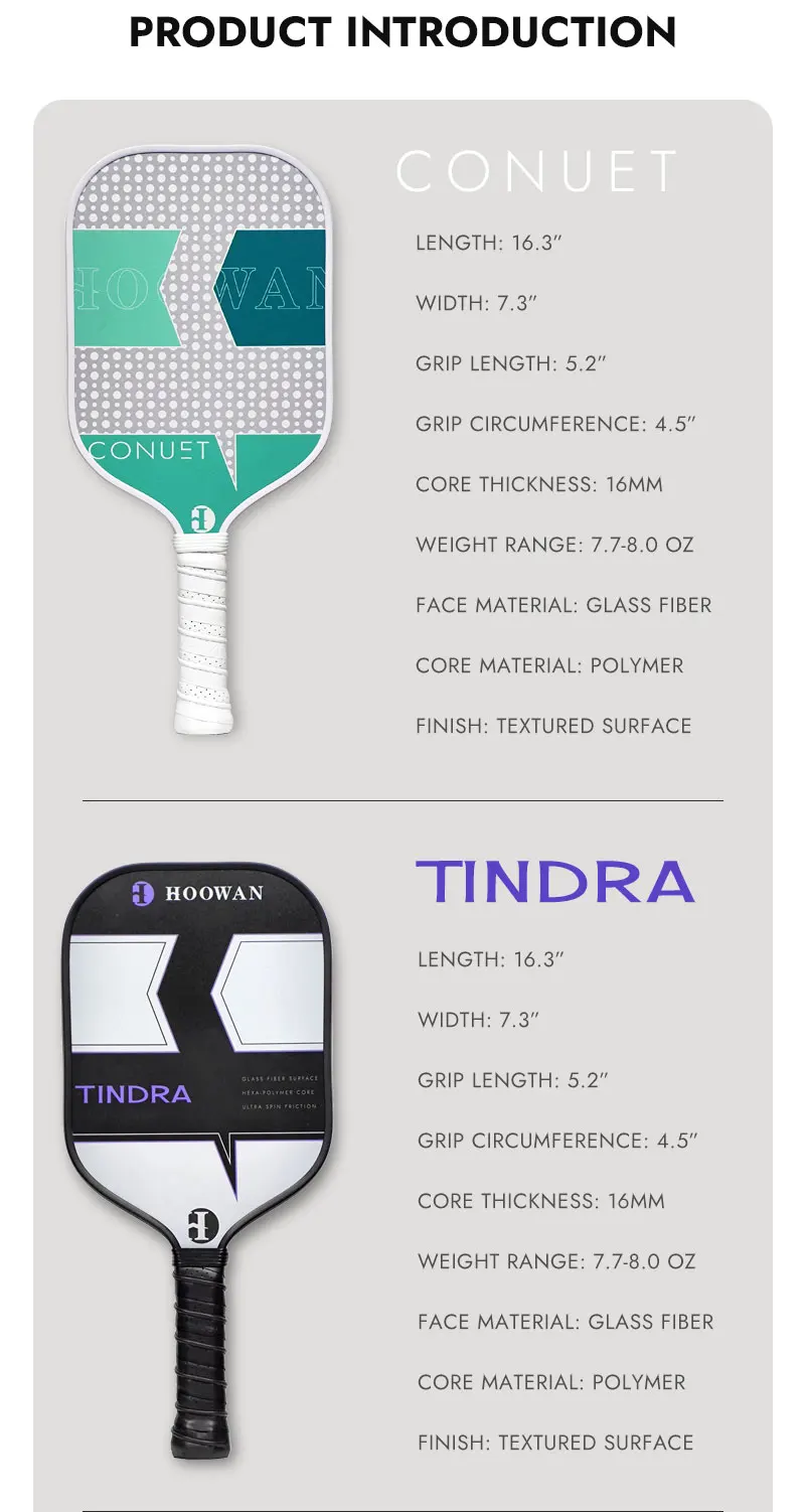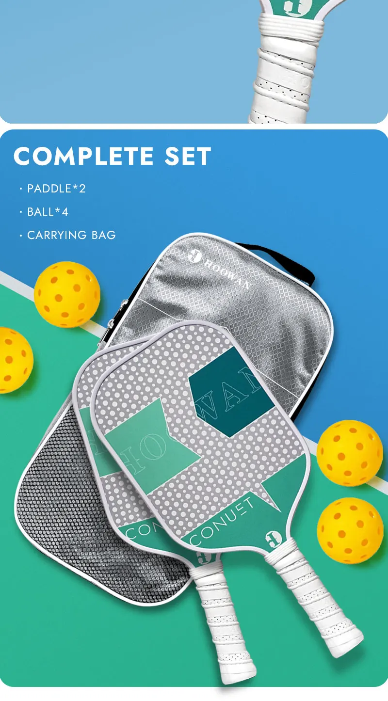 HOOWAN Pickleball Paddle Set of 2 Pickleball Rackets, 4 Outdoor Balls, Carrying Bag, Lightweight and Durable Pickle Ball Paddle
